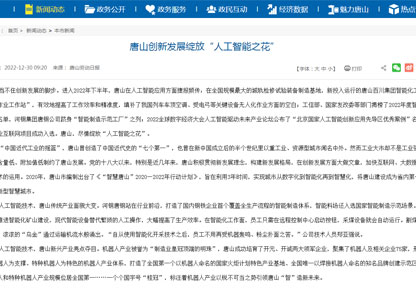 · 唐山創(chuàng)新發(fā)展綻放“人工智能之花”